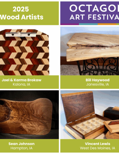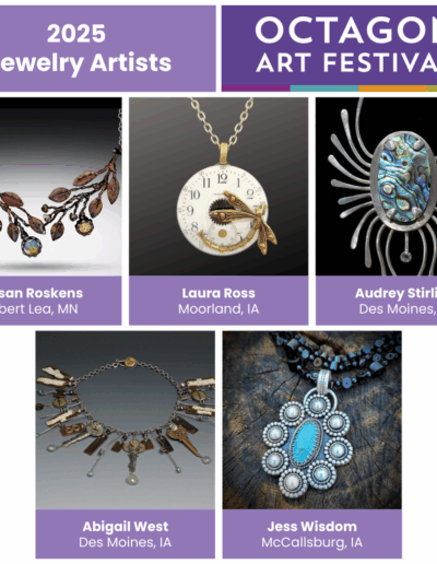 A panel of 3 jurors (NOT Octagon staff) will perform an on-site judging for cash purchase awards on the day of the festival between 10 am – 2 pm. Three Honorable Mentions ($100 each) and one Best of Show ($150) will be presented to the winning artists at 2 pm.